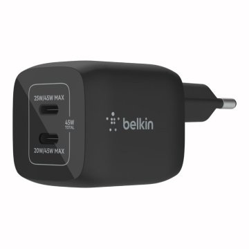 CARGADOR USB-C BELKIN 45W WCH011VFBK 2xUSB-C GAN BOOST CHARGE PRO NEGRO