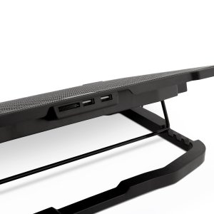 BASE DE REFRIGERACION PARA PORTATILES COOLBOX HASTA 17″ 5 VENTILADORES REGULABLES LED AZUL 4 ALTURASNEGRO