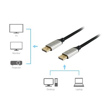 CABLE DISPLAYPORT A DISPLAYPORT PREMIUM 1.4 8K/60Hz 3M MALLA ALGODÓN TRENZADO Y CONECTOR ALUMINIO EQUIP 119263
