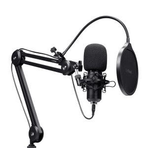 MICROFONO TRUST USB GXT 270 EMITA II CARDIOIDE BRAZO AJUSTABLE ANTIVIBRACION MUTE NEGRO