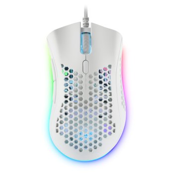 MOUSE MARS GAMING RGB MMEX DISE¾O HIVE WHITE 32Kdpi PIXART 3389PRO SWITCH SUPERFICIE PERFORADA ILUMINACION RGB CHROMA