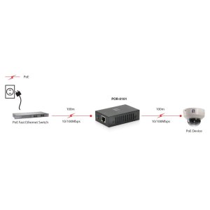 POE EXTENDER LEVEL ONE POR-0101 1 PUERTOS EXTIENDE 100m PoE+
