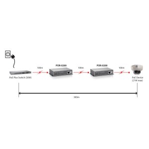 POE EXTENDER LEVEL ONE POR-0200 1 PUERTOS CONECTABLE EN CASCADA EXTIENDE 100m PoE-PLUS
